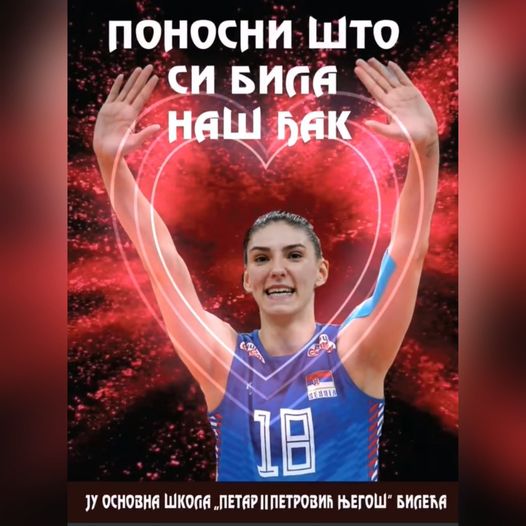 "Драги пријатељи , имамо дивну вијест за све вас. У знак захвалности и поштовања према нашој ученици, Тијани Бошковић, сутра вече од 20 часова на стадиону Моцарт, поред школе, организујемо заједничко гледање финала Свјетског првенства у одбојци за жене у коме се састају репрезентације Србије и Бразила.