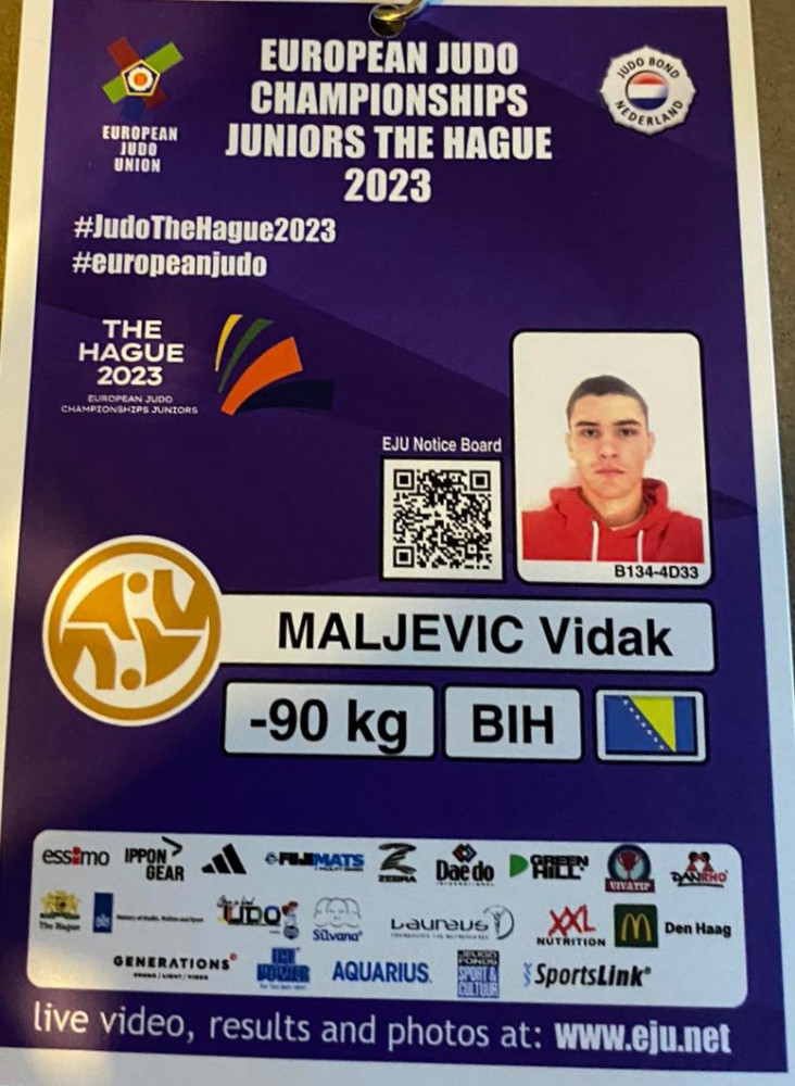 Član džudo kluba "Leotar" Vidak Maljević sutra će nastupiti u sastavu reprezentacije BiH na Evropskom prvenstvu za juniore u kategoriji do -90 kilograma koje se održava u Hagu, Holandija.