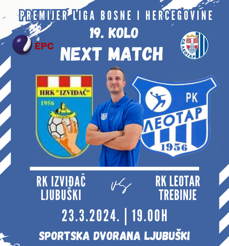 Posle pet vezanih pobjeda rukometaši Leotara gostuju ekipi Izviđača koji su lideri na tabeli.Utakmica se igra u Ljubuškom sa početkom u 19 časova.
