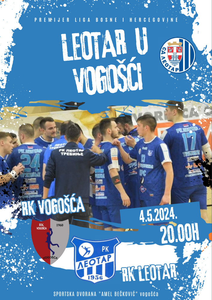 Ostala su još dva kola do kraja Premijer lige BiH. U subotu (4.5.2024). godine od 20č Leotar gostuje kod Rukometnog kluba "Vogošća" iz Vogošće.