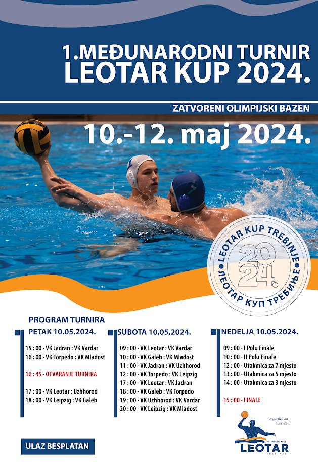 Vaterpolo klub Leotar organizovaće od 10. do 12. maja prvi 'Leotar kup' koji će okupiti timove iz šest država i to iz – Bosne I Hercegovine, Srbije, Njemačke, Ukraine, Hrvatske i Makedonije. Takmičenje će se održati u kategoriji Kadeta U14.