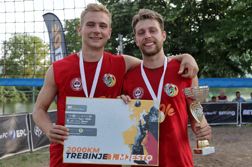 Na Bregovačkom bazenu u Trebinju danas je završen najpopularniji turnir u odbojci na pijesku u Republici Srpskoj „Sunrise beach volley tour 2024“, a pobjednici su Aleksa Mandić i Danilo Nikolić, koji su u finalu rezultatom 2:0 pobijedili Nikolu Vujovića i Andreja Huzejrovića.