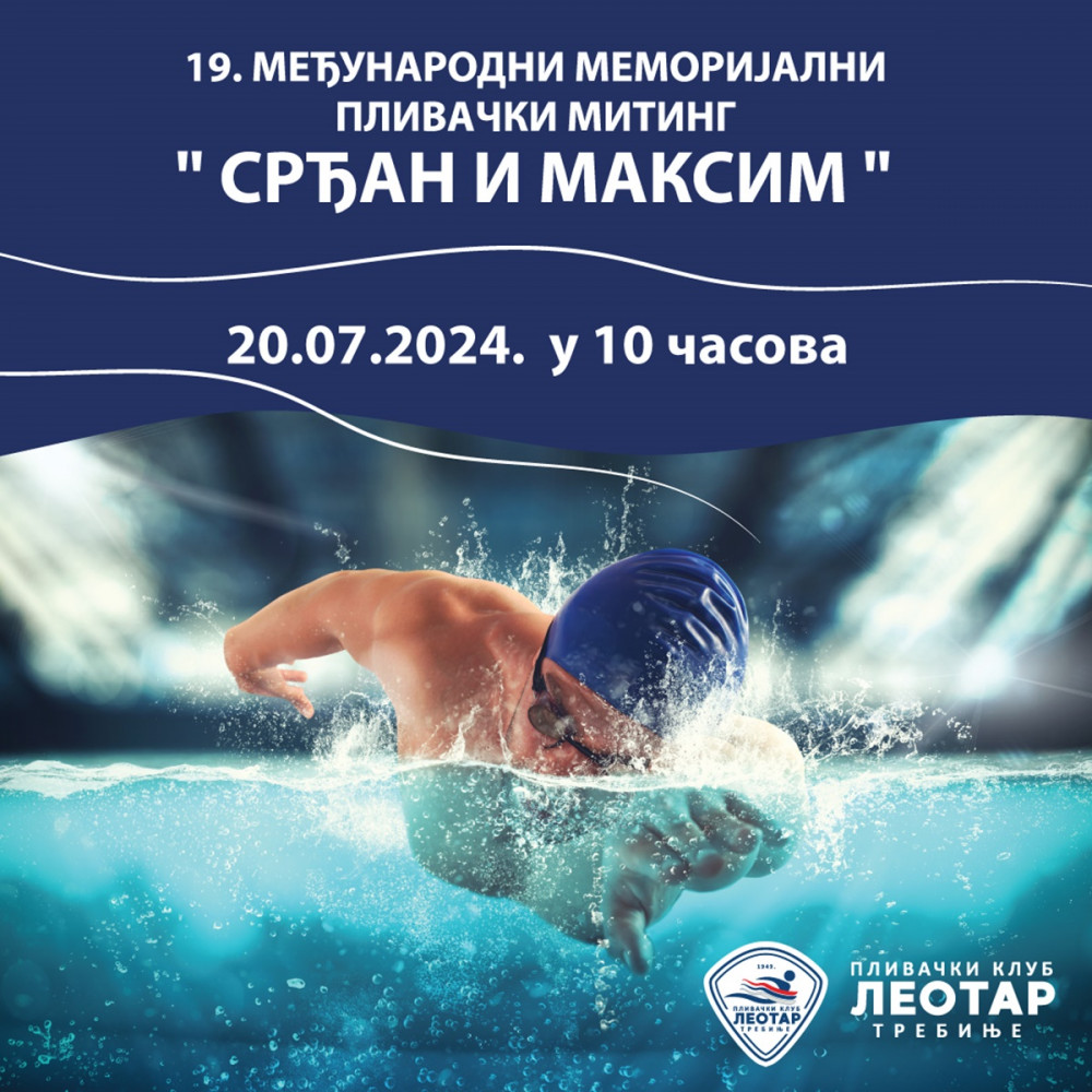 Plivački klub „Leotar“, u subotu, 20. jula, organizuje 19. Međunarodni memorijalni plivački miting "Srđan i Maksim", koji će okupiti 348 plivača iz 24 kluba.