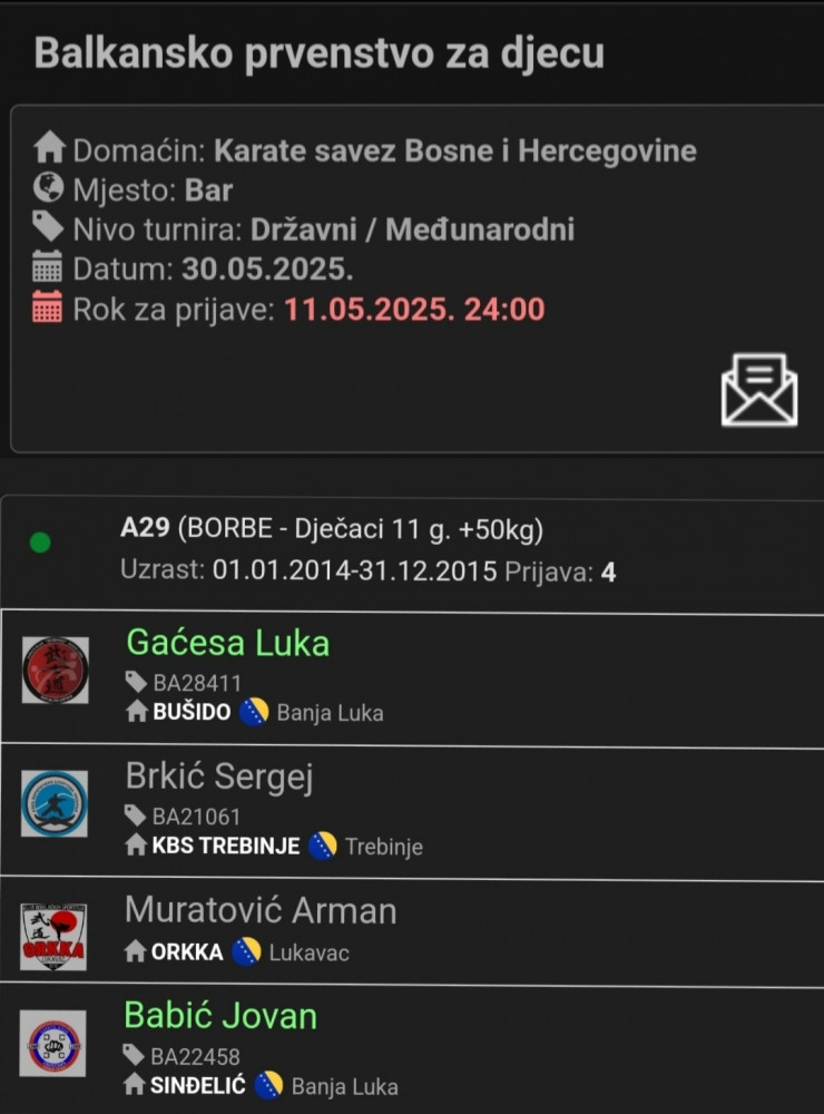 Takmičar "KBS Trebinje", Sergej Brkić plasirao se na Blakansko prvenstvo za djecu, koje će se održati krajem mjeseca u Baru. Sergej će nastupiti kao član reprezentacije Bosne i Hercegovine u kategoriji dječaka 11 godina, + 50 kg. Čestitamo našem takmičaru i trenerima Radomiru Miliću i Vladimiru Rosiću na ovom velikom uspjehu.
