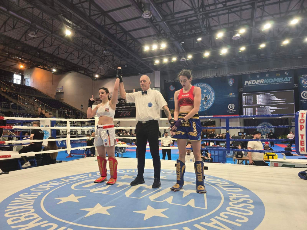 Ivana Cvijetic u disciplini low kick +60kg ml.juniroke, bronzana medalja. Ivana je u polufinalu poražena od predstavnice Moldavije.