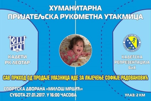 Rukometni klub „Leotar“ Trebinje organizuje sutra humanitarnu utakmicu za pomoć maloj Sofiji Radovanović.