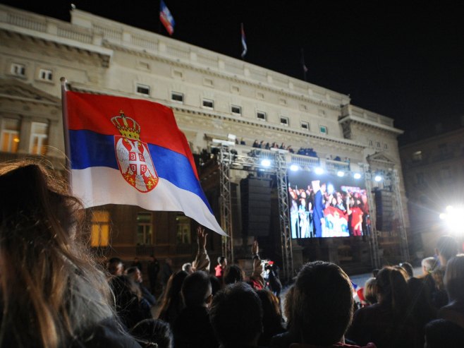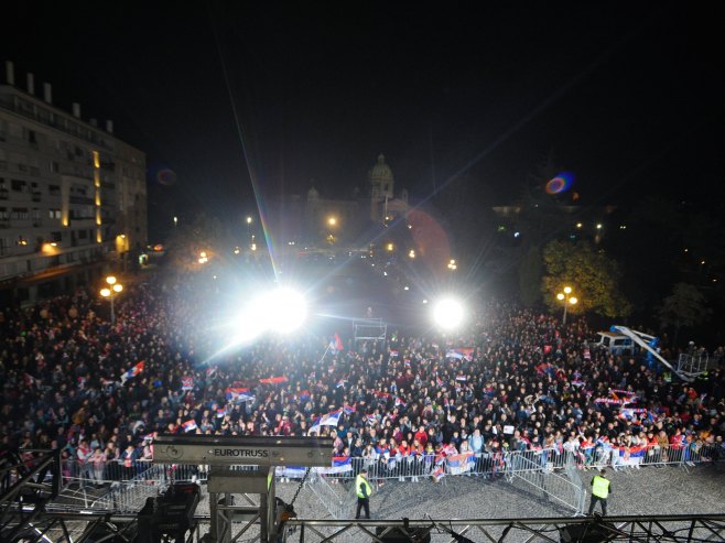 Окупљеним се обратио и селектор Данијеле Сантарели који је обећао да ће сљедећи пут када буде на балкону причати на српском језику.