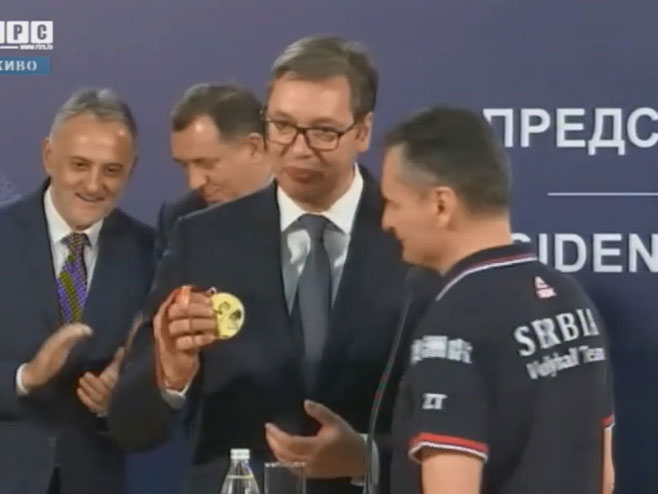 Predsjednik Srbije Aleksandar Vučić organizovao je prijem za žensku odbojkašku reprezentaciju Srbije kojem je prisustvovao i predsjednik Republike Srpske Milorad Dodik.