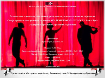 JU "Kulturni centar", Gradsko pozorište Trebinje organizuju, u saradnji sa Akademijom umjetnosti Banja Luka, za sve zainteresovane prezentaciju prijemnih