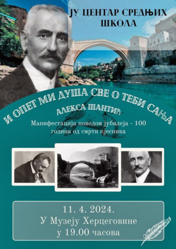 U Muzeju Hercegovine u Trebinju, sutra će biti održana manifestacija posvećena Aleksi Šantiću pod nazivom „I opet mi duša sve o tebi