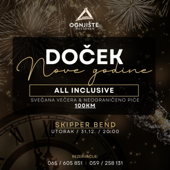 SPEKTAKULARAN DOCEK NOVEGODINE U RESTORANU "OGNJISTE"U novogodisjoj noci ce samo za Vas svirati i pjevati trio Micko, Natasa i Bobo!Cijena ulaznice je 100KM i obuhvata