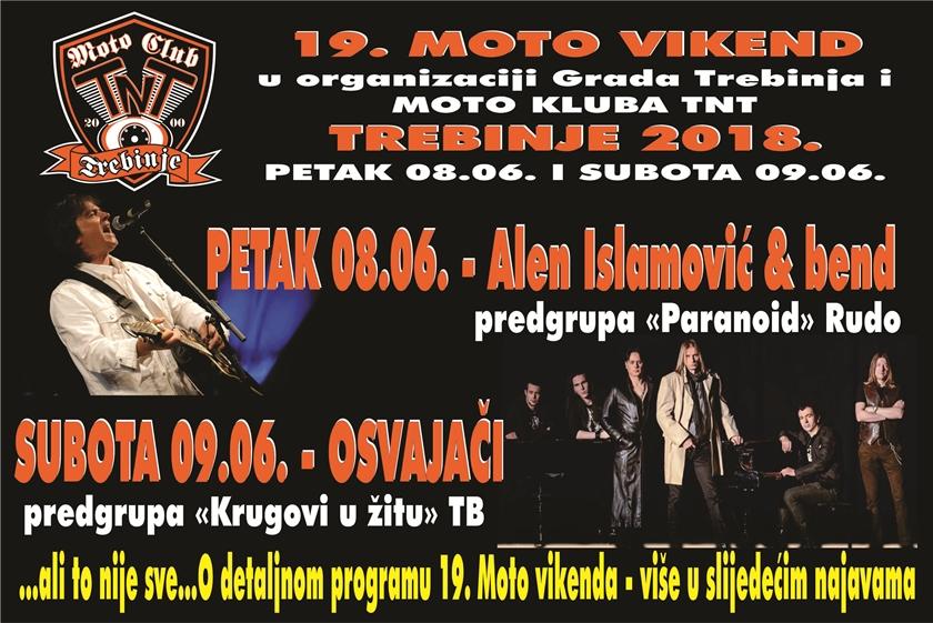 Pored legendarnog Alena Islamovića, koji će u Trebinju nastupati prve večeri, te benda „Paranoid“ iz Rudog, organizatori kažu da je svoj nastup na "19. Moto vikendu" potvrdio i poznati bend „Osvajači“, kao i trebinjski "Krugovi u žitu".