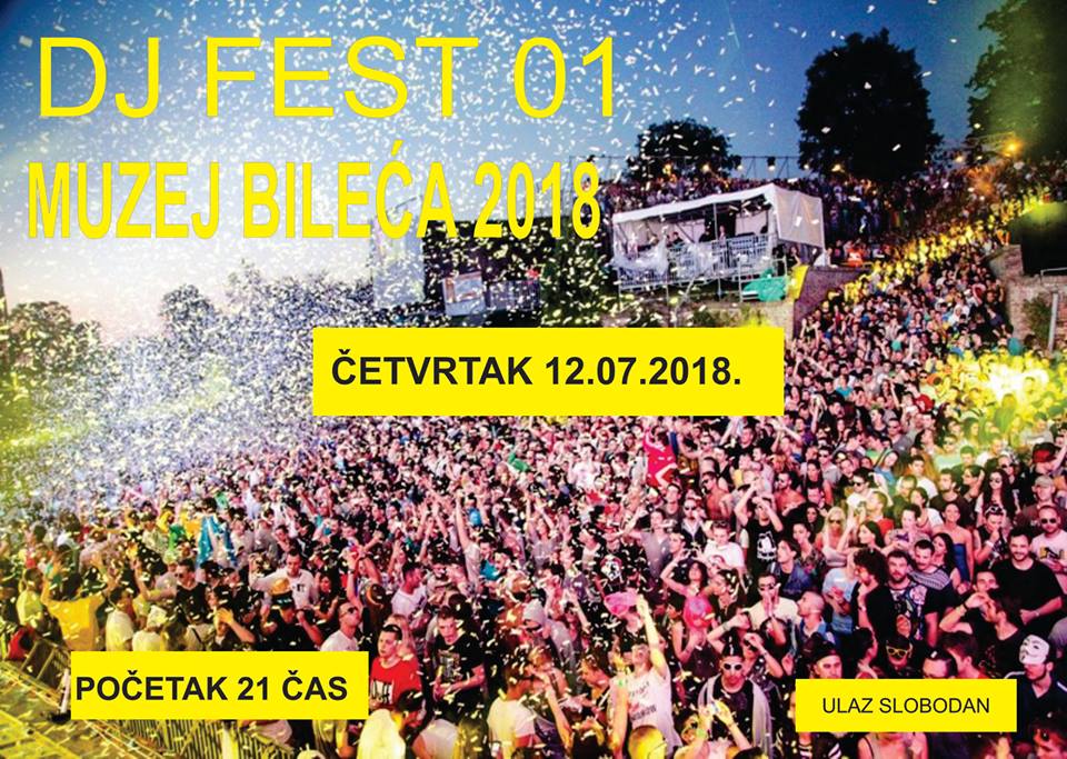Удружење „Културни центар Билеће“ покренуо је још једну манифестацију „DJ FEST 01“ која ће се одржати у четвртак 12.7.2018. године на платоу испред бившег музеја у Билећи.