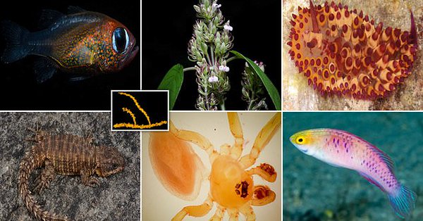 Lista novoopisanih vrsta uključuje 17 vrsta riba, osam vrsta biljaka, šest morskih puževa, pet paukova, četiri vrsta jegulja, tri vrste mrava, dvije vrste raža, isto toliko osa, mahovina, korala i guštera.