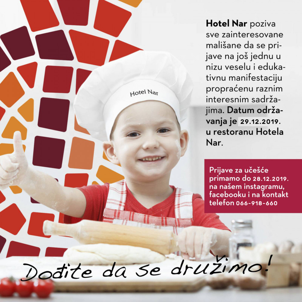 ХОТЕЛ НАР позива све заинтересоване малишане да се пријаве на још једну веселу и едукативну манифестацију. На манифестацију ће, драга дјецо, доћи клован Срећко као и Дјед Мраз, не пропустите то велико дружење.