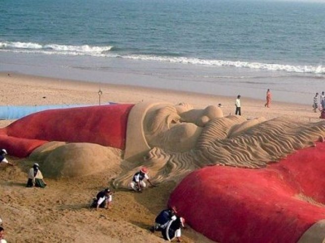 Skulpturu Djeda Mraza predstavio je danas indijski umjetnik i skulptor Sudarsan Patnaik.