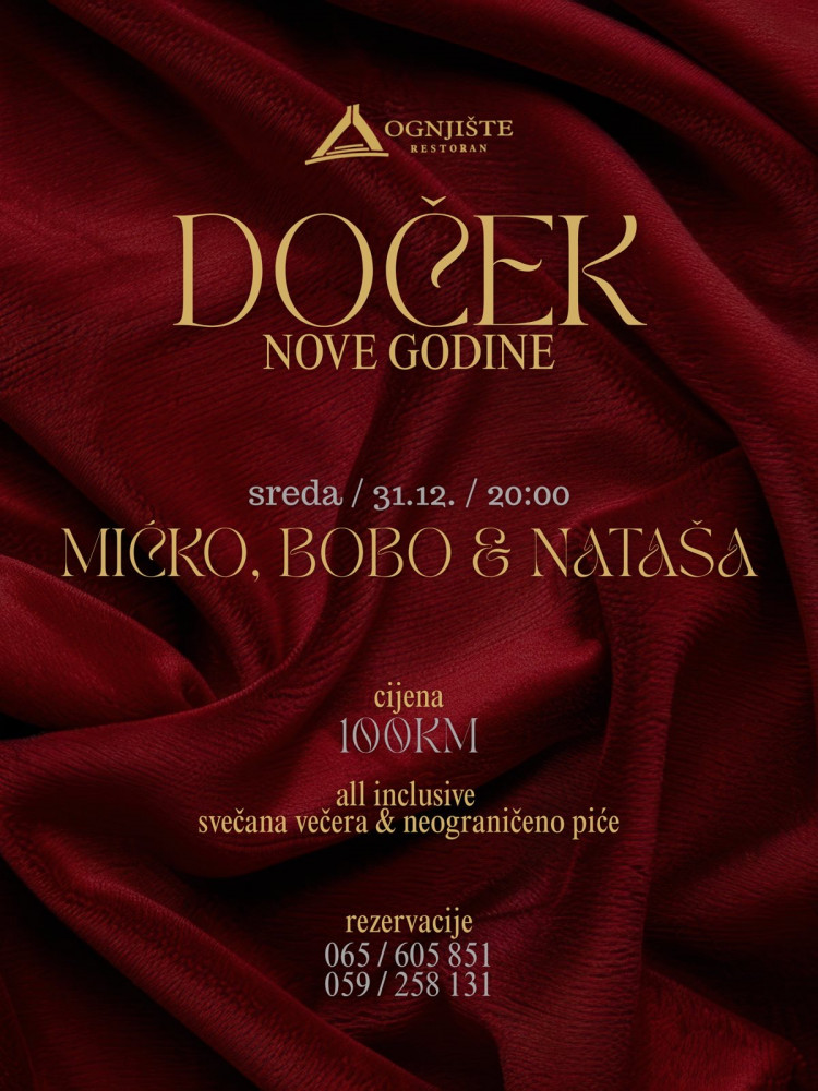 U novogodisjoj noci ce samo za Vas svirati i pjevati trio Micko, Natasa i Bobo!