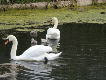 Dva para trebinjskih labudova u mjesecu maju, dobili su potomke - po tri mala labudića koja sada sa svojim roditeljima plove rijekom Trebišnjicom. Mi smo