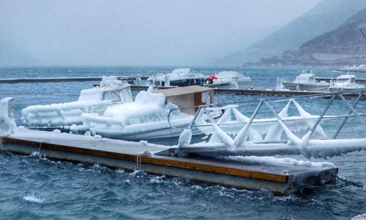 Sibirska hladnoća, snijeg i olujni vetar zaledili su i more u uvali Ivinj u Tisnom, a i gotovo cijela Istra i Kvarner su na temperaturi između minus tri i pet stepeni pa je more uz obalu zaleđeno i kod Poreča, Bakra i Povila.