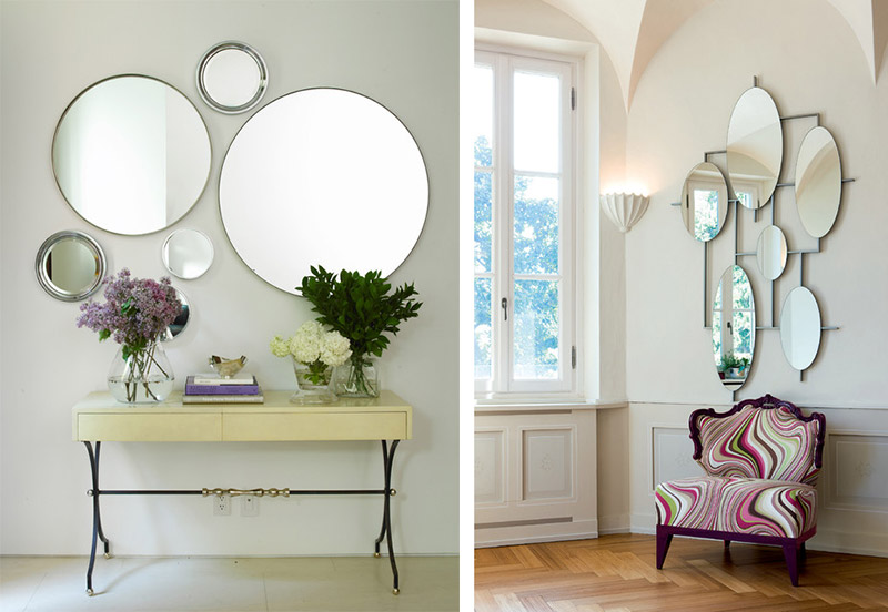 Izaberite između kačenja jednog velikog ogledala na zid, i velikog broja manjih različitih ogledala u vidu prave svetlucave galerije.