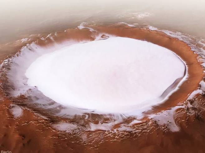 Evropska svemirska agencija objavila je spektakularni snimak kratera na Marsu koji bi mogao da omogući naseljavanje ljudi i da bude izvor vode za ljudsku koloniju ako se ona ikada oformi na susjednoj planeti. Krater Koroljev, ispunjen ledom, snimljen je iz vazduha.