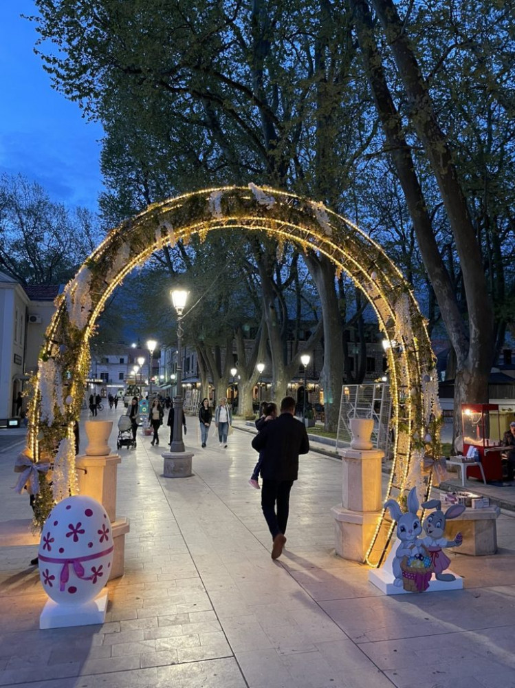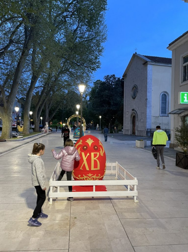 U centru grada postavljena su ukrasna jaja koja simbolizuju najveći hrišćanski praznik, a u parku su postavljeni svjetleće srce sa natpisom „Trebinje“ i školica za naše najmlađe sugrađane.