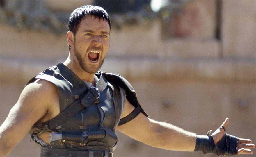 Glavnu ulogu imao Rasel Krou koji je igrao generala Maksima Decidija Meridija, prijatelja cara Marka Aurelija, kojeg izdaje i ubija njegov ambiciozni sin Komod. Film u kojem se Maksim probija kroz gladijatorsku arenu kako bi se osvetio za ubistvo svoje porodice i cara, osvojio je prije 21. godinu pet Oskara, uključujući onog za najbolji film.