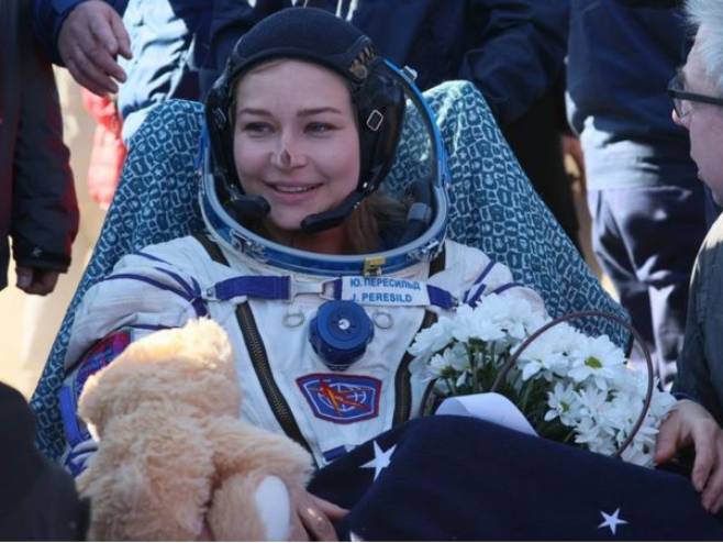 Glumica i režiser proveli su 12 dana na Međunarodnoj svemirskoj stanici kako bi snimali sekvence za film, prenio je TASS.
